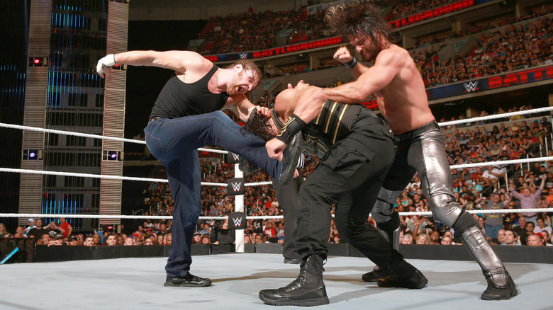 The first and perhaps only three way match between the members of the Shield came at a somewhat small stage at Battleground 2016. One of the highlights of the match was Dean Ambrose and Seth Rollins working together to power-bomb Roman Reigns through the announce table, which was the signature finisher for the Shield before Rollins' betrayal sent the trio on their own paths to stardom. Dean Ambrose came into the match as the WWE Champion, and was able to successfully defend against the two men that knew him best.