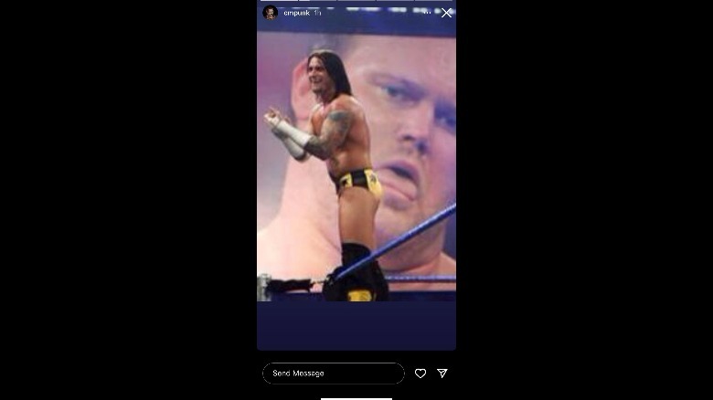 Punk took to his Instagram stories to post an old picture of him during his time in WWE, wearing yellow ring gear and standing on the middle turnbuckle while clapping his hands.