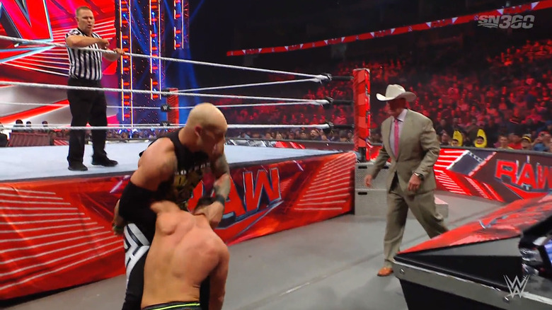 Adam Pearce comes to the ring and says he has an opportunity for him. He then says there is someone who has been knocking on his door for an opportunity all day: Rick Boogs!