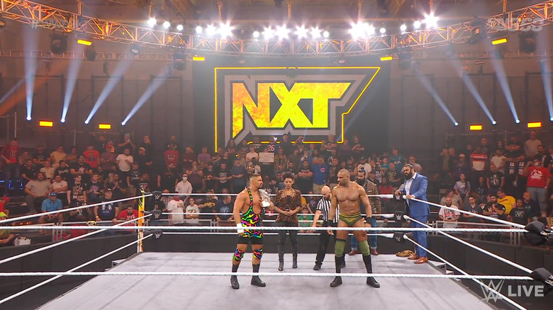 Back at ringside, Gallus heads down as Edris Enofé and Malik Balde are already waiting in the ring.