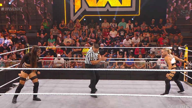 Back from the break, Tatum Paxley makes her way down to the ring.