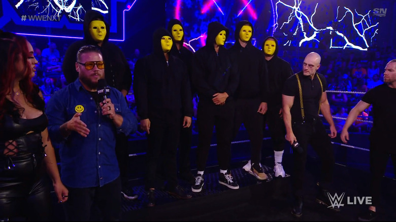 Last week, two masked individuals from Schism cost Joe Gacy, Rip Fowler, and Jagger Reid their six-man tag team match against "NXT" Champion Carmelo Hayes, Trick Williams, and Ilja Dragunov. Tonight, the trio and Ava will hold an interrogation as they look to get to the bottom of who they are and resolve their issues once and for all.