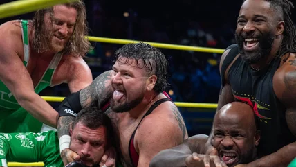 Elijah takes a charging Hotch down with a big boot. He lifted him in the air with one arm before sending him to the outside. Elijah slammed his head into the apron. Back in the ring, Hotch got tossed into the corner. Hotch went for a chop, but his arm was caught. Elijah used him to walk the ropes, jumped in the ring, and flipped Hotch over. Hotch walked to the ramp and Elijah grabbed him by the hair, slapped him, and sent him down the ramp. Hotch escaped to the ring and Order 4 blocked Elijah from getting in the ring. Elijah tried to punch Mustafa Ali, but he ducked and Hodge jumped over the ring to take him out.