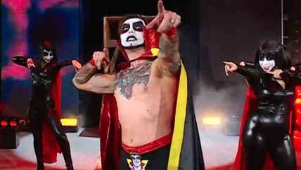 Though the photo may have been one of Danhausen's demands, it also wasn't the only reason he was on hand for "Raw" in Indianapolis, Indiana. Though he didn't have a massive song or dance routine like he had at Elimination Chamber, Danhausen still made his presence known, running into then WWE Intercontinental Champion Dominik Mysterio backstage and putting his trademark "curse" on Mysterio. It turned out that the curse worked in almost record time, as Mysterio would go on to lose the Intercontinental Championship to Penta in the main event.