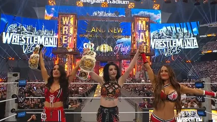Brie Bella and Paige defeated Irresistible Forces, Bayley & Lyra Valkyria, and Charlotte Flair and Alexa Bliss to win the Women's Tag Team Championships during Night One of WWE WrestleMania 42.